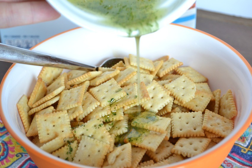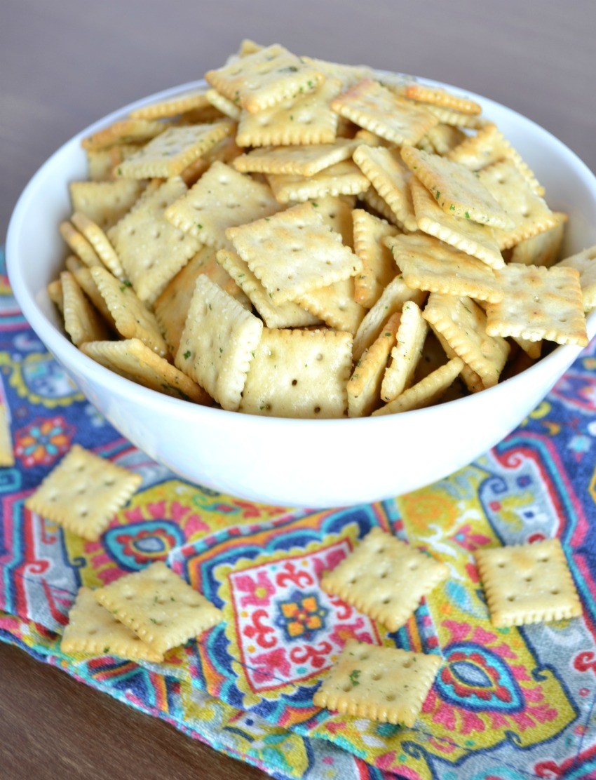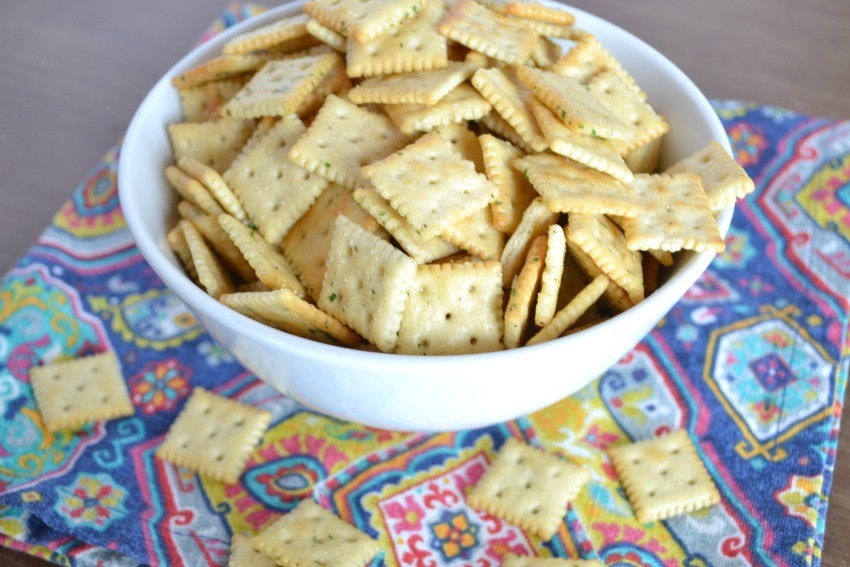 I love the ranch flavor and it makes for the perfect savory snack mix! If you want, you can make spicy saltine crackers by adding a teaspoon of red pepper flakes to the mix. You can also decide to go the italian route and use italian dressing mix rather than ranch dressing mix to completely change the flavor of this easy snack!