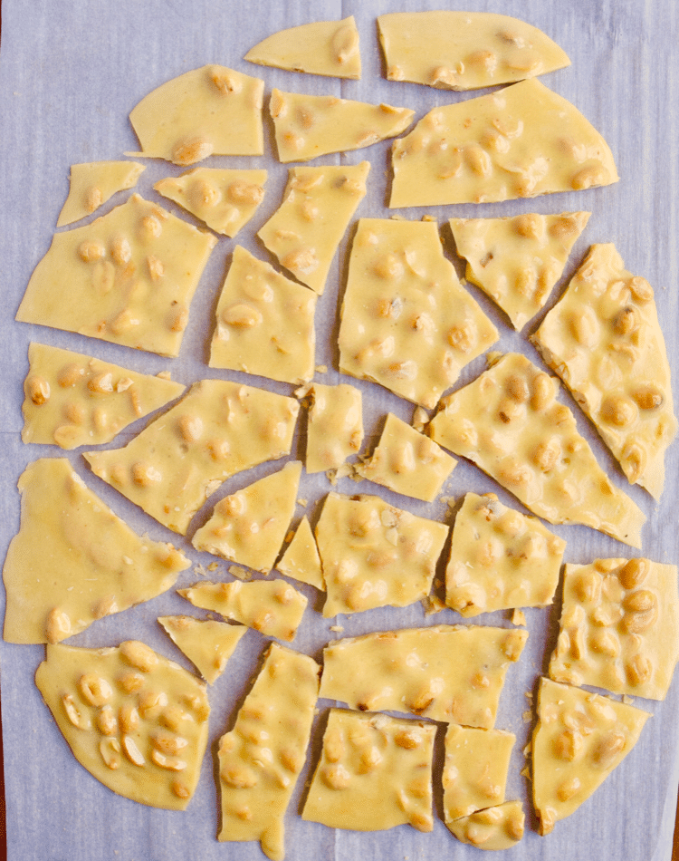 One of my husband’s favorites is Peanut Brittle. We were at the Farmer’s Market the other day and purchased some for like $5-$6 for a small bag and it got me thinking I could probably make that! So low and behold, I did! Here’s a simple, easy, and AMAZING Homemade Peanut Brittle Recipe! It’s probably the best brittle I’ve ever had and my stomach kinda hurts right now from eating it (and yet as I type I’m still eating it…dumb). Let’s dig into this deliciously easy peanut brittle recipe…