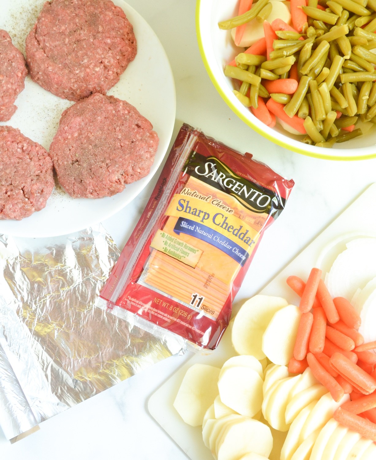 Summer time, to me, means getting out and getting our grill on. My husband and I love to grill (so much so that we even started a new grilling blog) and we never miss an opportunity for some fresh food hot off the grill, filled with spices and flavors. Sometimes it’s something we’ve planned a day in advance and have picked out the perfect cuts of meat, marinated it overnight, and is a much-anticipated meal. Other times we whip something up quickly and have our meal outside on the deck at 8:30 pm. Tonight I want to share with you an easy grilling recipe that your family will enjoy. What I love about this recipe is that you can make them in advance, it’s a no mess recipe, and everything is made all in one foil packet! A mom and dad’s dream dinner, if you will! Honestly, you don’t even need plates if you don’t want them! These Grilled Hobo Foil Packets are full of flavor and when paired with fresh veggies and a thick slice of Sargento® Sliced Sharp Natural Cheddar Cheese on top, you get the perfect amount of flavor and cheesy goodness all in one delicious bite. Let’s jump into how easy these are to make!