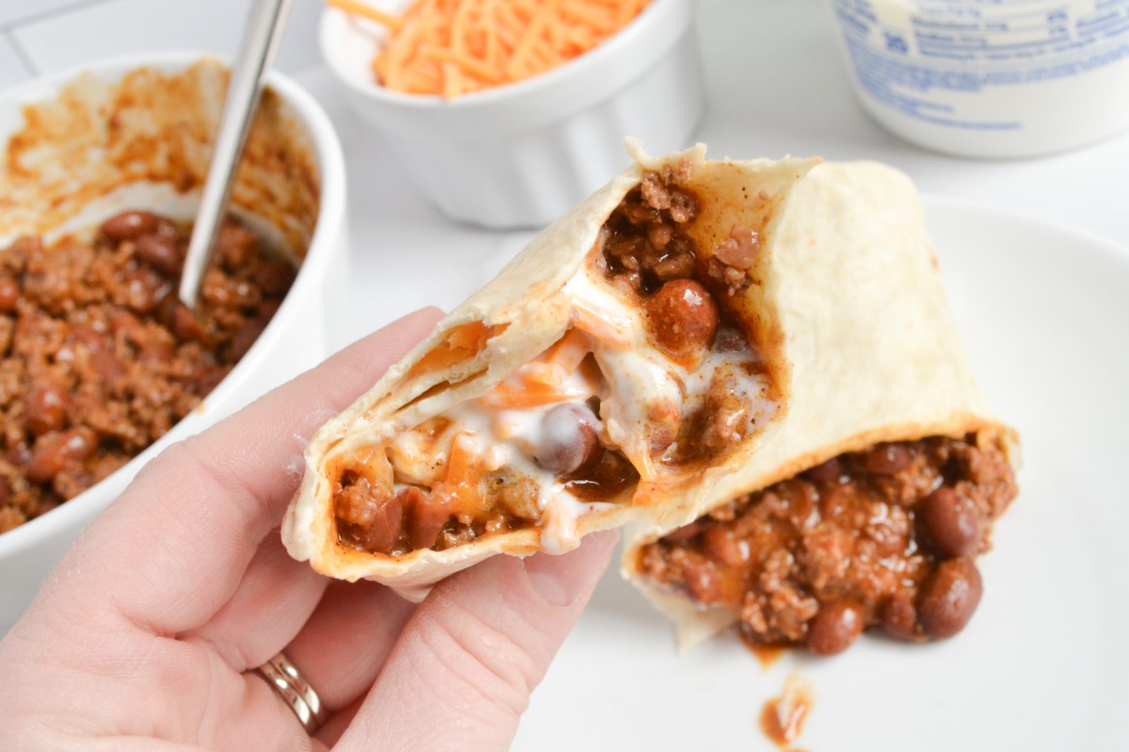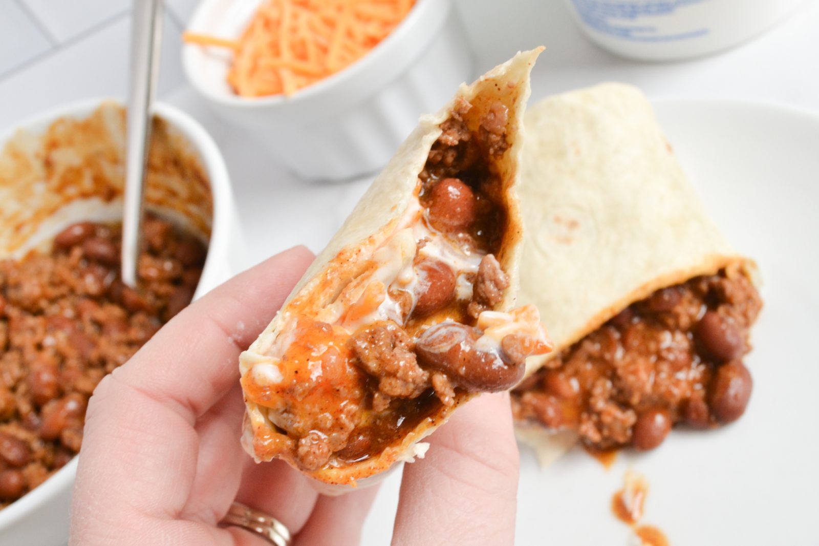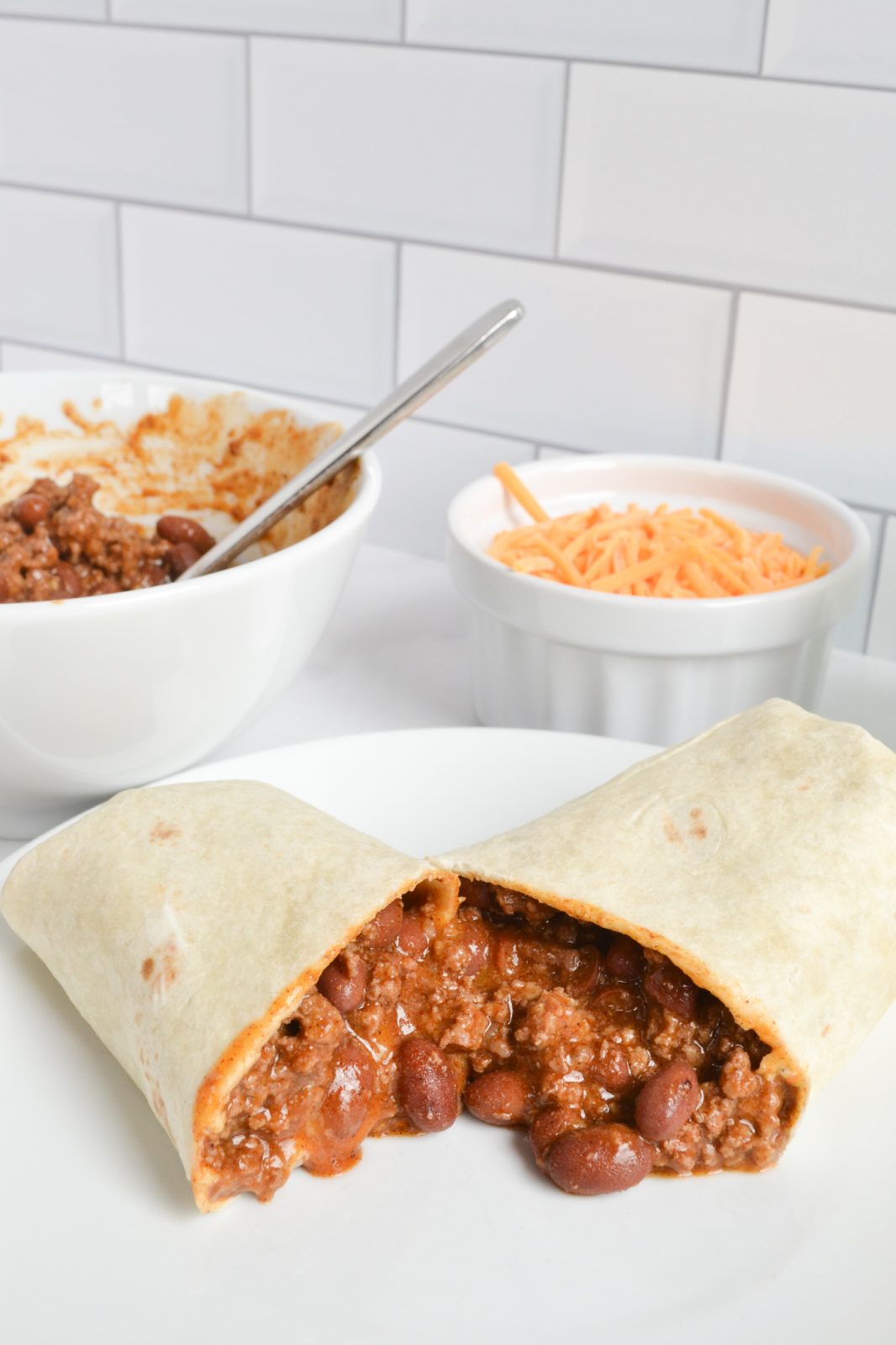 This week has been chaotic and I’m finally feeling prepared for whatever lies ahead. If you’re reading this past March 2020 and wondering what I’m talking about, this is the week that the nation announced the great Coronavirus pandemic of 2020. It’s unlikely I’ll remember to re-write this post later on, so this will hopefully put this post in context for you. Regardless, we’re feeling prepared for whatever may or may not hit our area and one of the things that I know a lot of moms like me are thinking is how to make new and fresh meals with items you already have on your shelves most likely. When we first started hearing about coronavirus in China, I did a little preemptive preparation and bought some extra canned goods and frozen items so that we would be prepared. One of the things I really always keep on hand is beef, chili beans, and taco seasoning. It’s so easy to make chili or tacos when all else fails, right? So today I want to show you how to make these super delicious and ridiculously easy 3-Ingredient Chili Colorado Burritos. They will feed your whole family and they pack a ton of flavor.