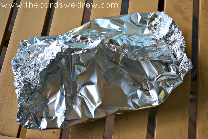 - Fold up the foil length wise in the center and the fold the ends in to create a little cobbler tent (don’t smush it!).