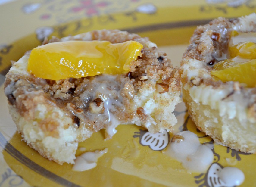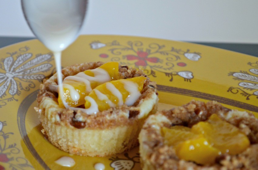 A few weeks ago I shared my love of Peach Tea with these delicious Boozy Popsicles. Today I’m excited to share my newest and most favorite dessert so far this fall with these Peach and Pecan Sweet Tea Cheesecake Cups. Let me tell you about these babies…they start with a sugar cookie bottom, a cheesecake center, then a crispy pecan streusel topping….all topped off with fresh peaches and a sweet tea glaze! Holy delicious, Batman. You guys will be really surprised too at how easy these are to make!