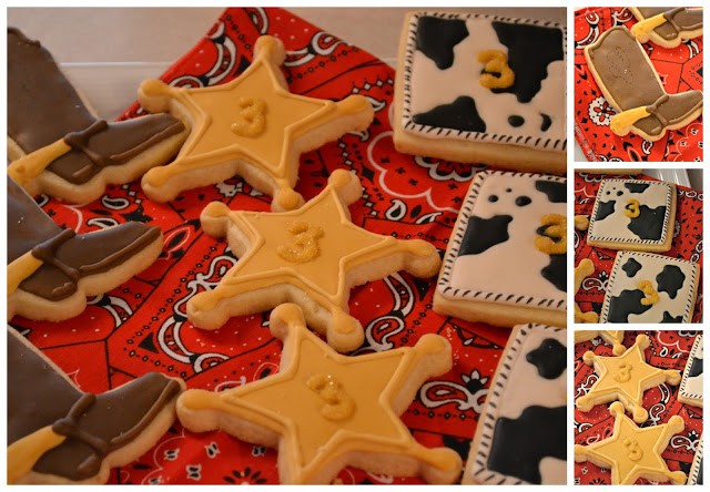The napkins were wrapped with sheriff badge napkin wrappers courtesy of DimplePrints. The party horns were from Party City.