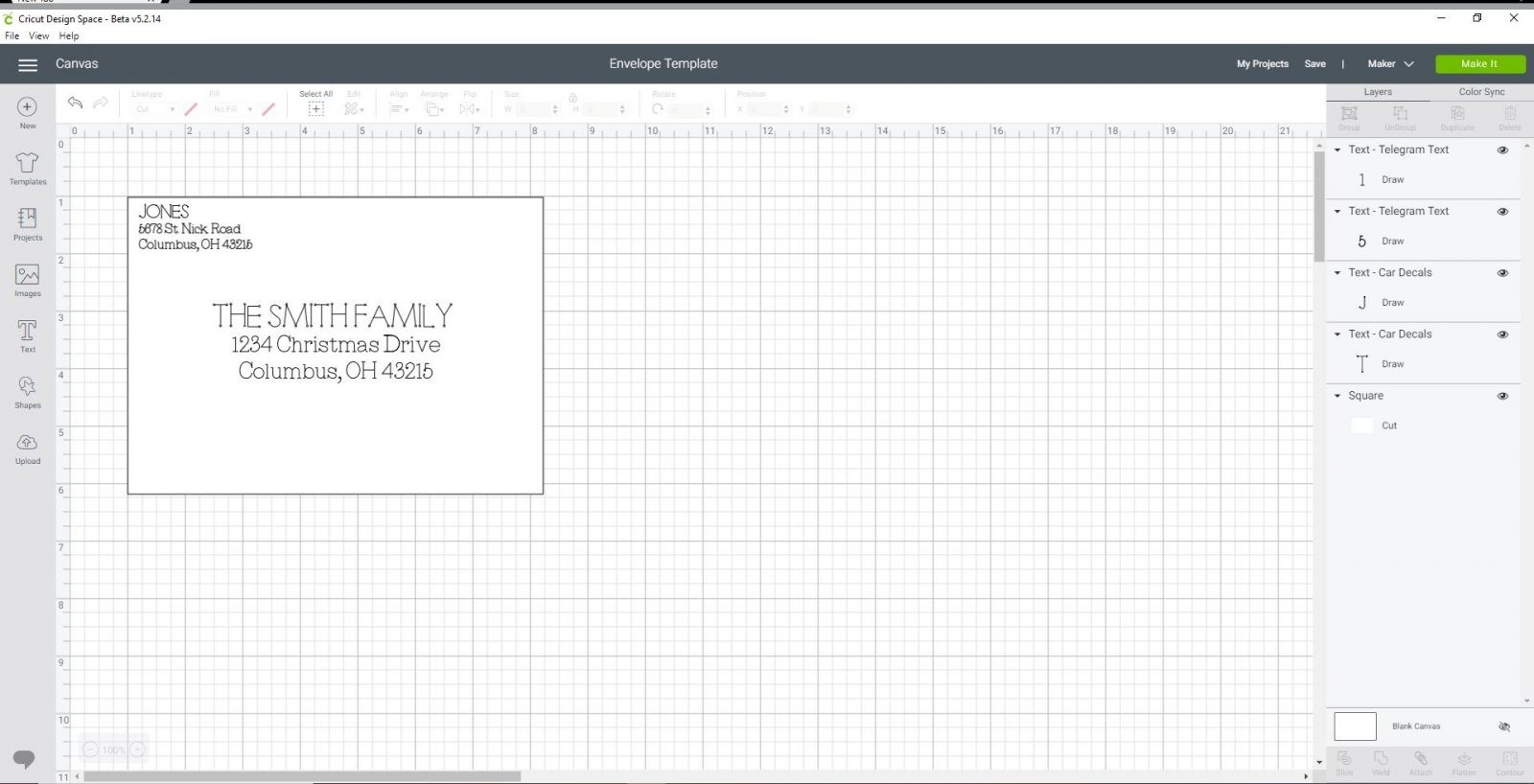 I don’t know about you guys, but one of my LEAST favorite things to do is to address envelopes. I really despise it, but I’ve always envied people with beautiful handwriting that send in these gorgeous cards that are perfect from the time they hit my mailbox to when I open it up and see all their smiling faces on a Christmas card. This year I was determined to learn how to address envelopes using the Cricut Maker. This saved me time and the envelopes turned out to be complete perfection!! Although it seems tedious at first, once you’ve done one or two it’s really not hard at all and I even made a 5×7 envelope template for you to start out with if you’re really struggling. Let’s walk through how to address envelopes using the Cricut….