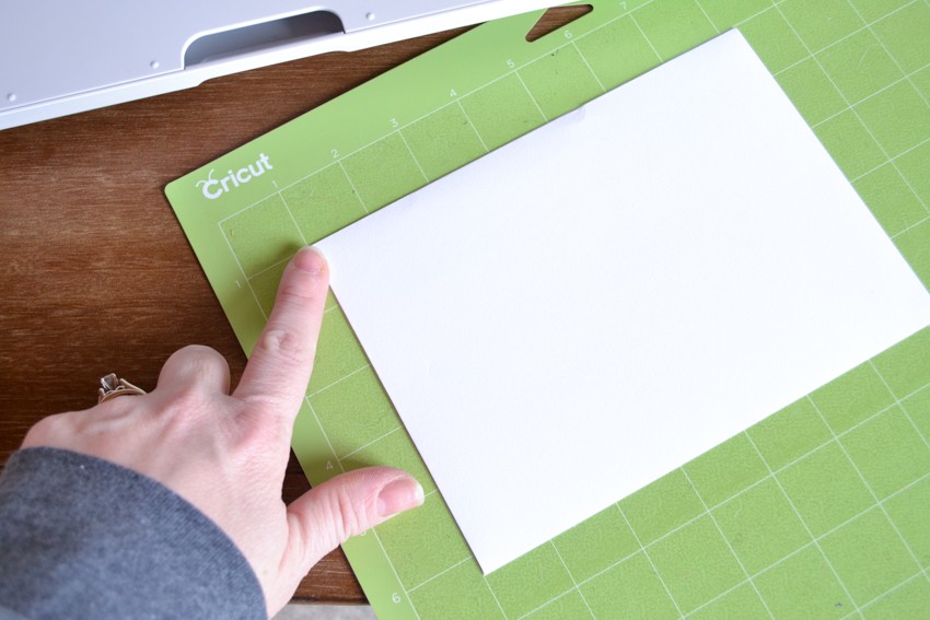 Using a Standard Grip Cricut Mat, you will line up the envelope on the same markings that you used in Cricut Design Space. Mine are lined up at the 1″ x 1″ mark. This is where I will place my actual envelope on a Standard Grip Mat and load it into my Cricut Maker.