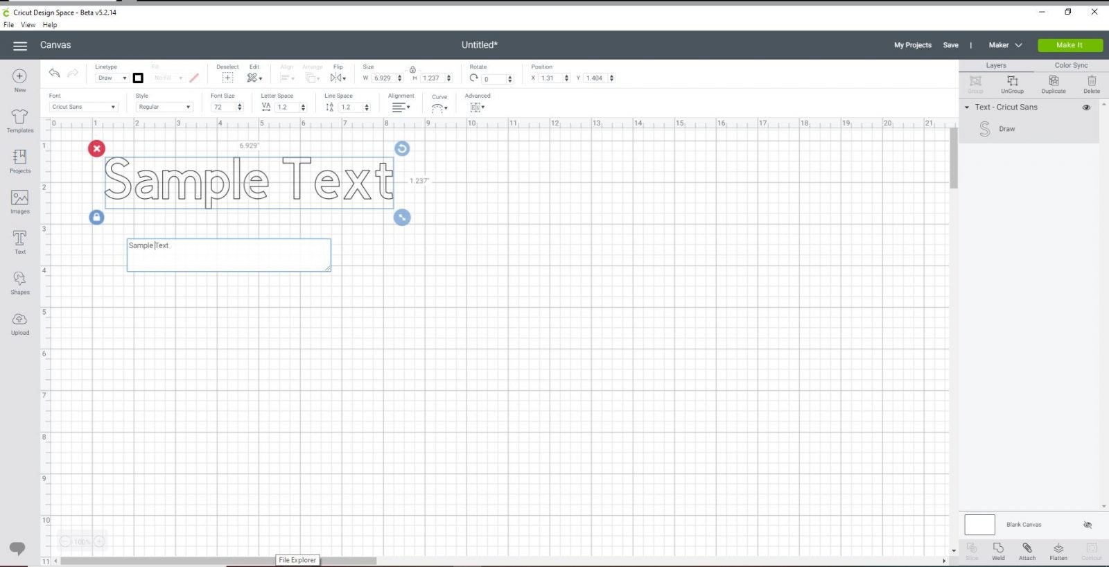 Another important part, if you do not use my template, is to be sure that when you are adding text that you change the line type in the upper left corner to the Draw setting. This is what tells the Cricut that it’s going to Draw instead of cut. This is super important! My template already has this taken care of for you, but if you’re going rogue, this is an important step!!