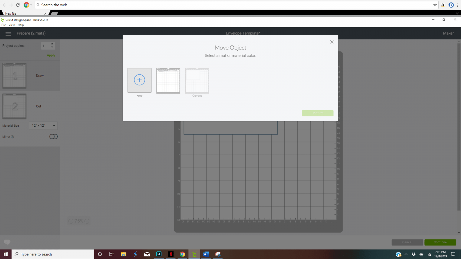 We get to arranging our mats. When you hit “Make it” the machine automatically organizes what it thinks it’s cutting and drawing into two mats. We’re going to combine those mats and then eliminate the cutting portion so it’s only drawing.