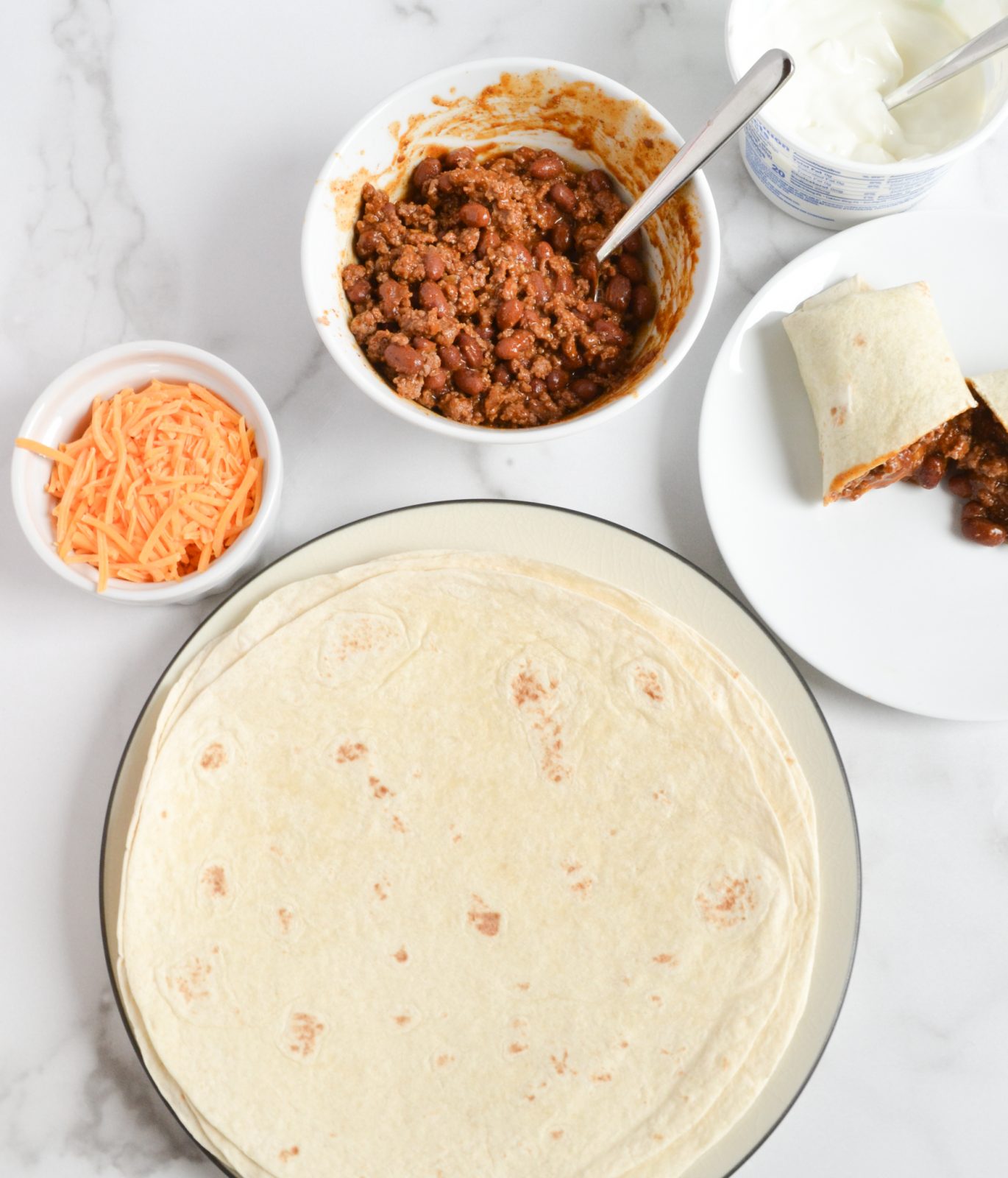 This week has been chaotic and I’m finally feeling prepared for whatever lies ahead. If you’re reading this past March 2020 and wondering what I’m talking about, this is the week that the nation announced the great Coronavirus pandemic of 2020. It’s unlikely I’ll remember to re-write this post later on, so this will hopefully put this post in context for you. Regardless, we’re feeling prepared for whatever may or may not hit our area and one of the things that I know a lot of moms like me are thinking is how to make new and fresh meals with items you already have on your shelves most likely. When we first started hearing about coronavirus in China, I did a little preemptive preparation and bought some extra canned goods and frozen items so that we would be prepared. One of the things I really always keep on hand is beef, chili beans, and taco seasoning. It’s so easy to make chili or tacos when all else fails, right? So today I want to show you how to make these super delicious and ridiculously easy 3-Ingredient Chili Colorado Burritos. They will feed your whole family and they pack a ton of flavor.
