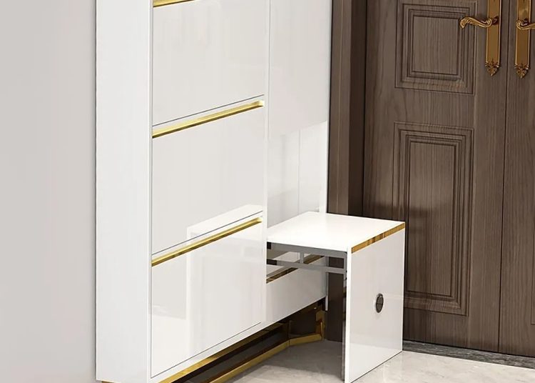One of the functional and stylish entryway shoe storage ideas for keeping your shoes and having a place to sit and wear shoes as well as a shoe bench is a space-saving shoe storage bench.